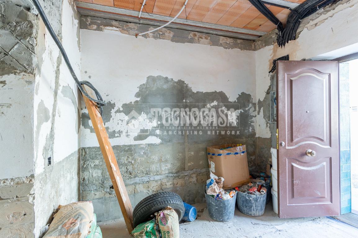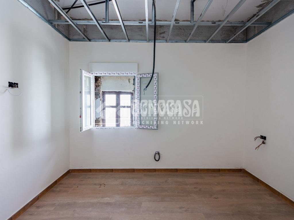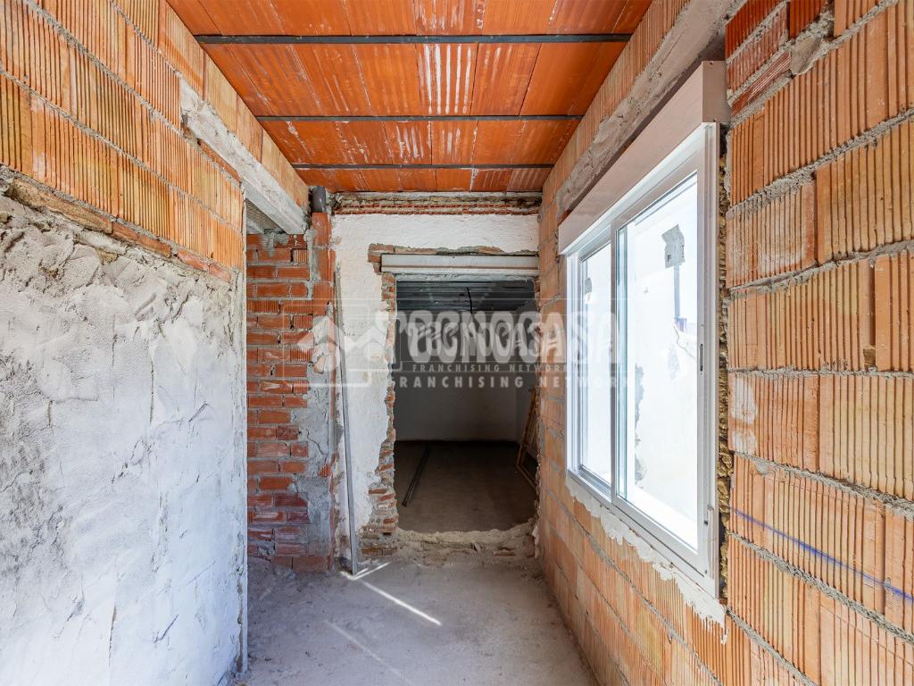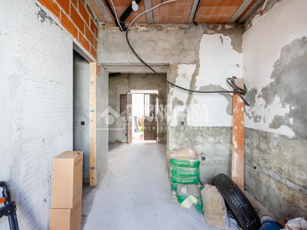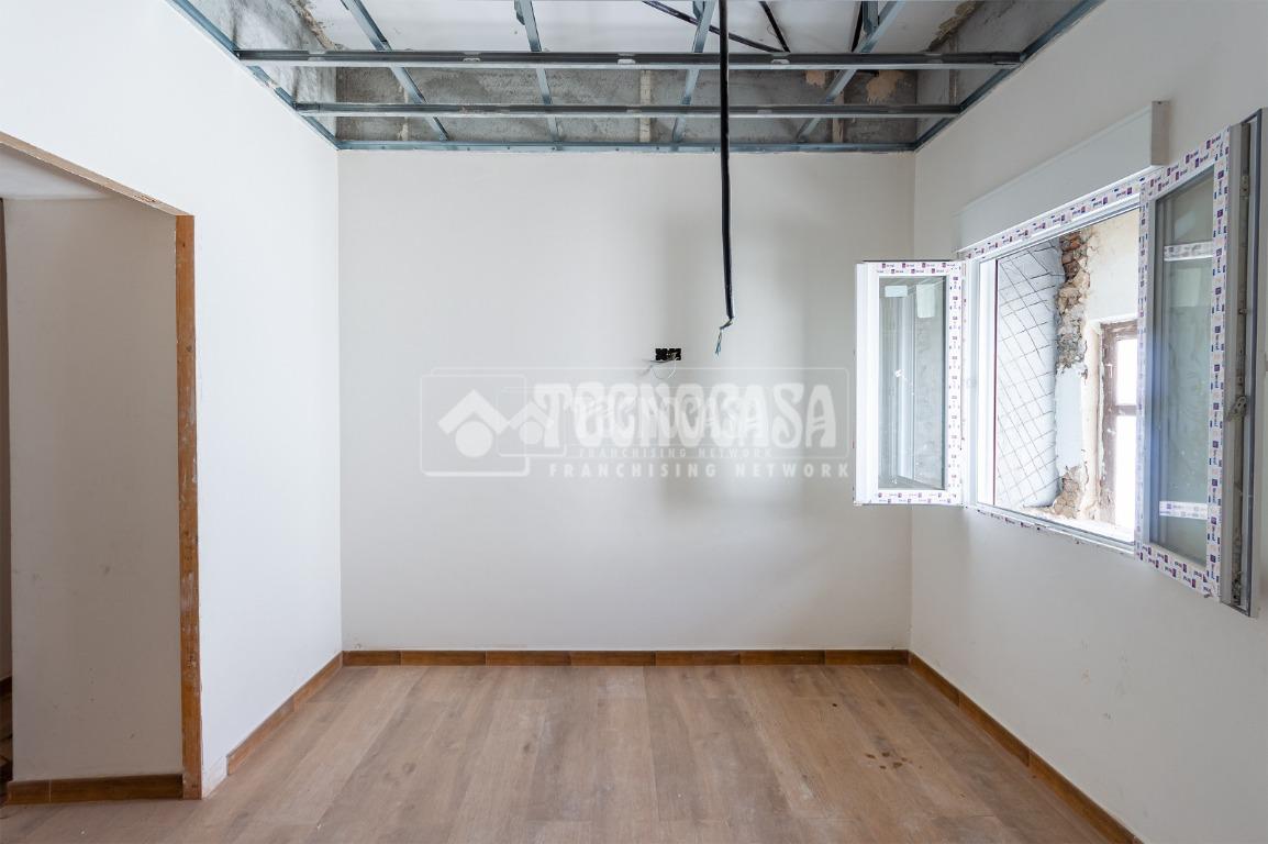 Se trata de una casa restaurada parcialmente. Se divde en salón, cocina, seis dormitorios (o pueden ser menos y usar algunas de esas estancias como oficina, vestidor, trastero, etc. ), y dos baños.