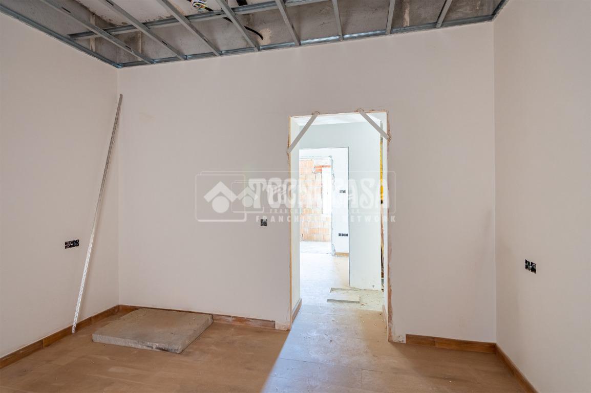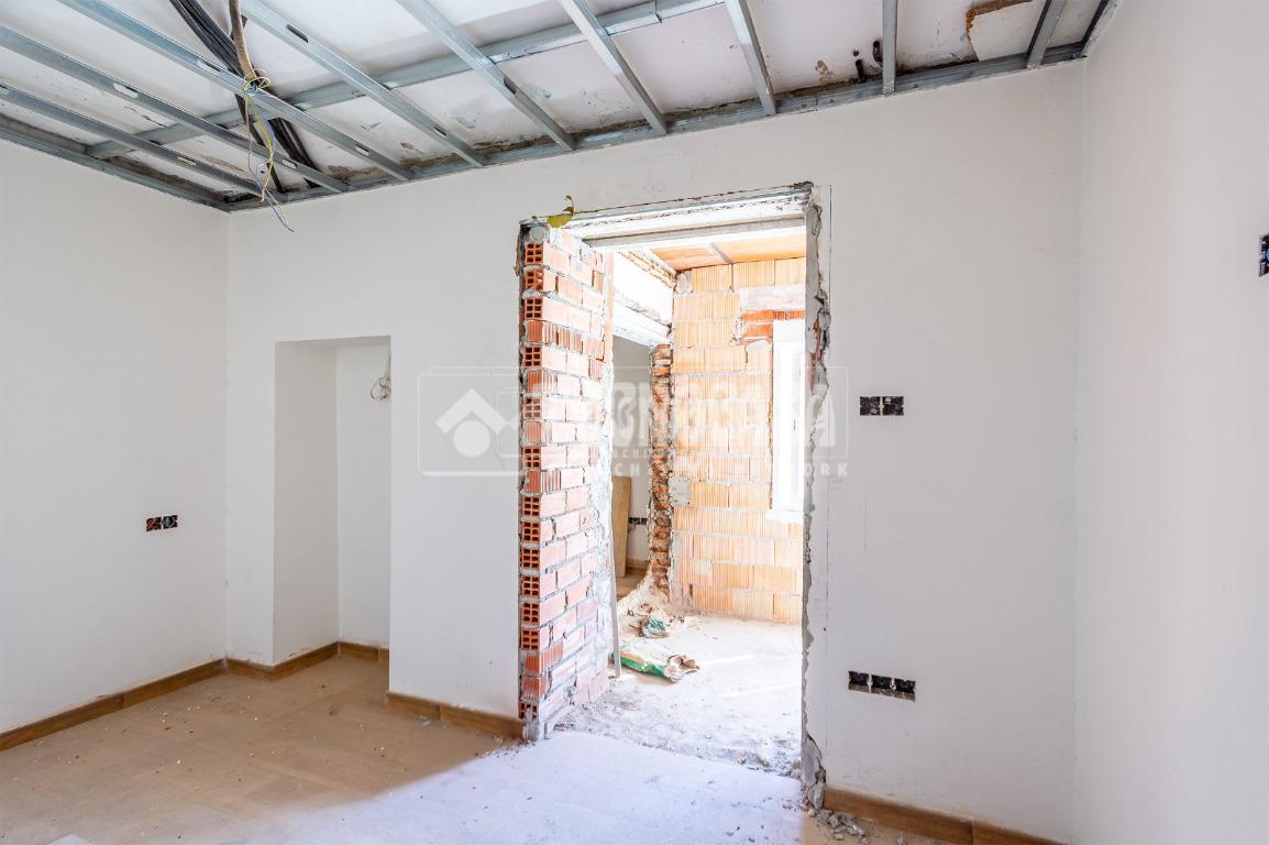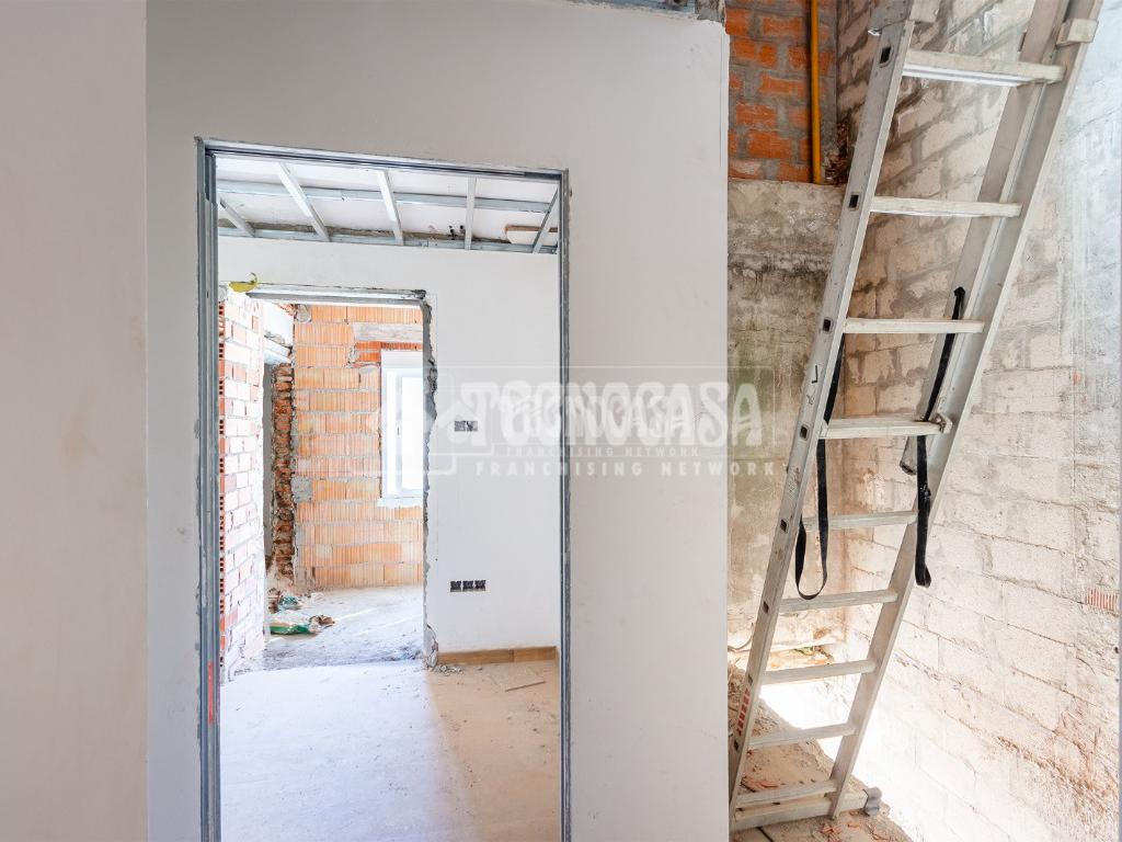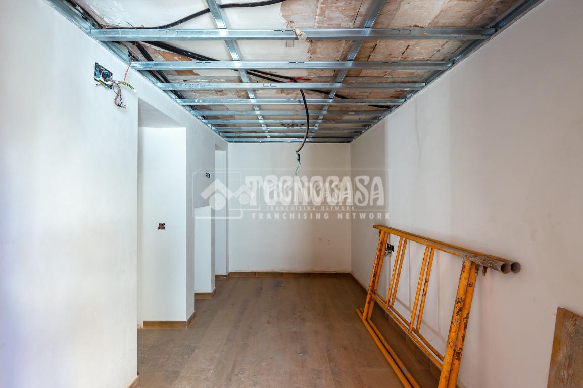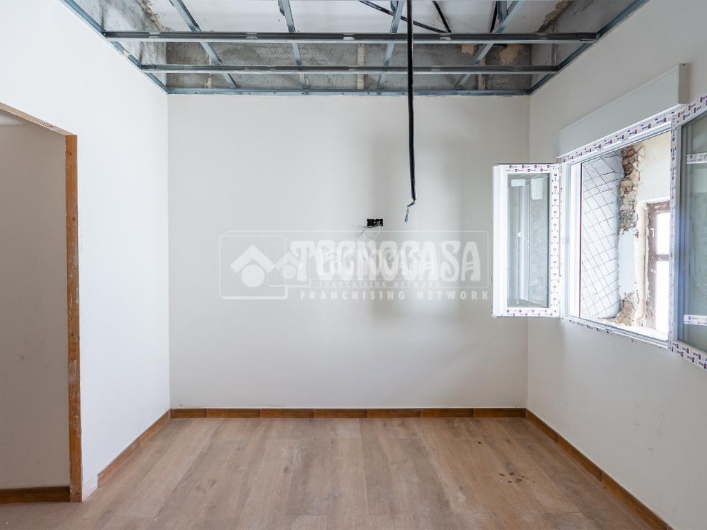 Se trata de una casa restaurada parcialmente. Se divde en salón, cocina, seis dormitorios (o pueden ser menos y usar algunas de esas estancias como oficina, vestidor, trastero, etc. ), y dos baños.