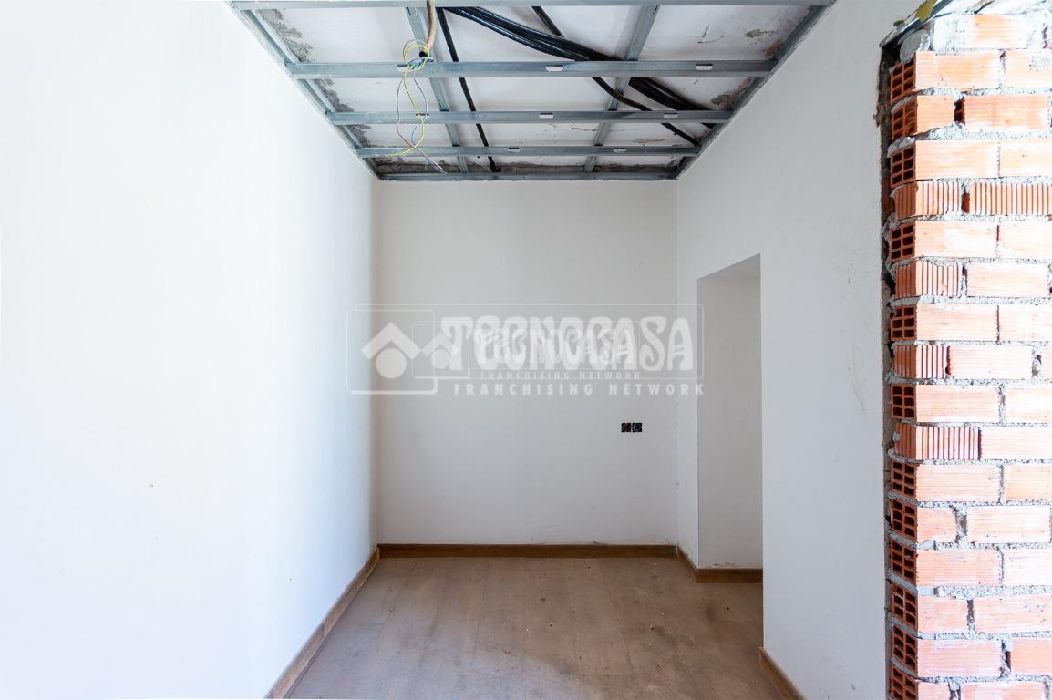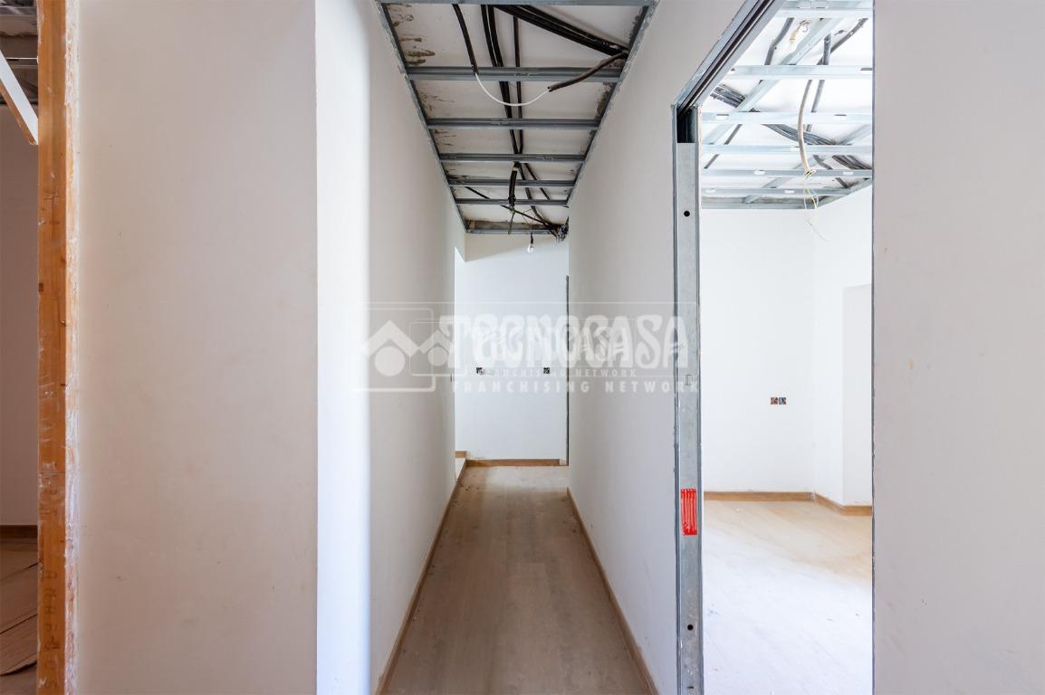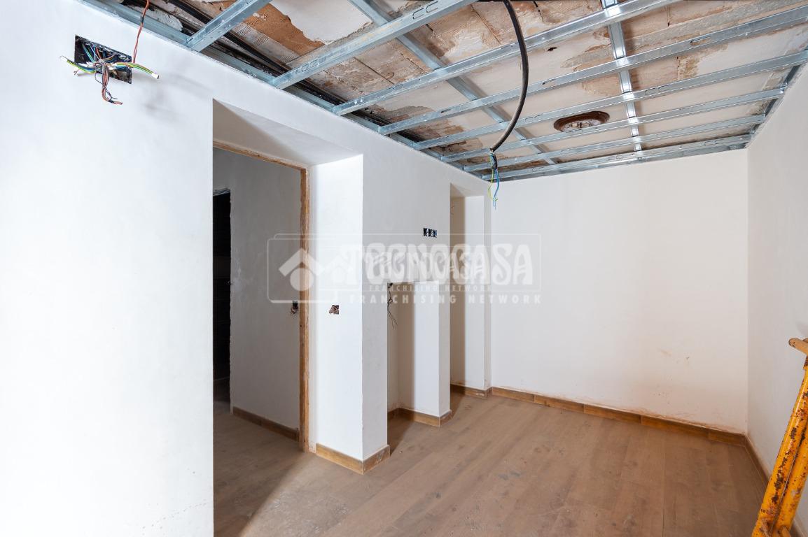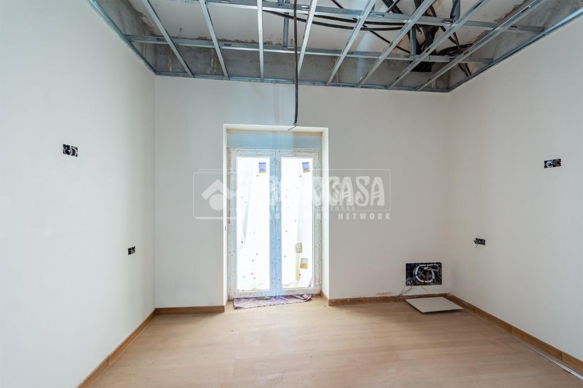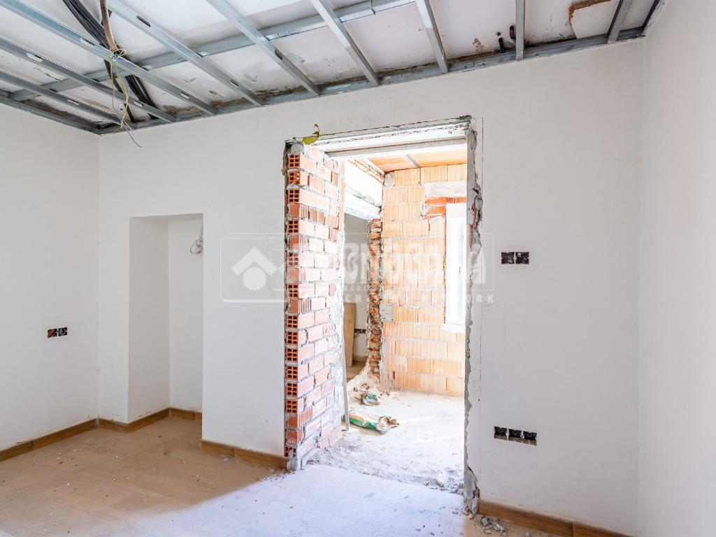 Se trata de una casa restaurada parcialmente. Se divde en salón, cocina, seis dormitorios (o pueden ser menos y usar algunas de esas estancias como oficina, vestidor, trastero, etc. ), y dos baños.