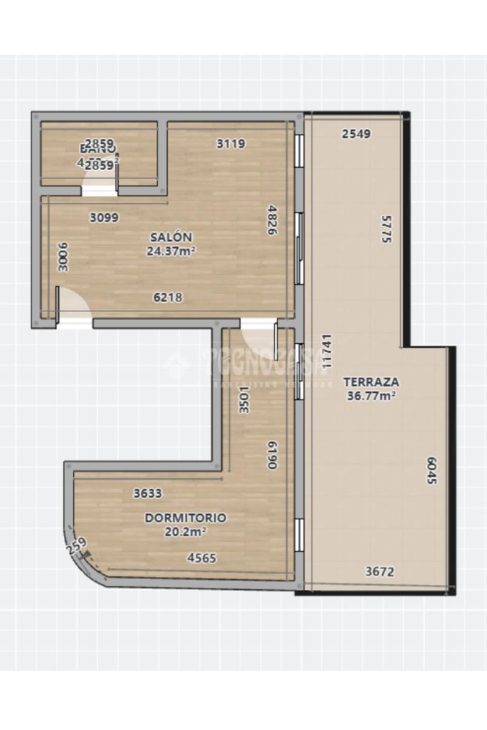 La vivienda se divide en salón, cocina, un dormitorio y un baño (con bañera). La terraza es súper grande y con vistas. Piso muy soleado. Tiene un total de 59m2.