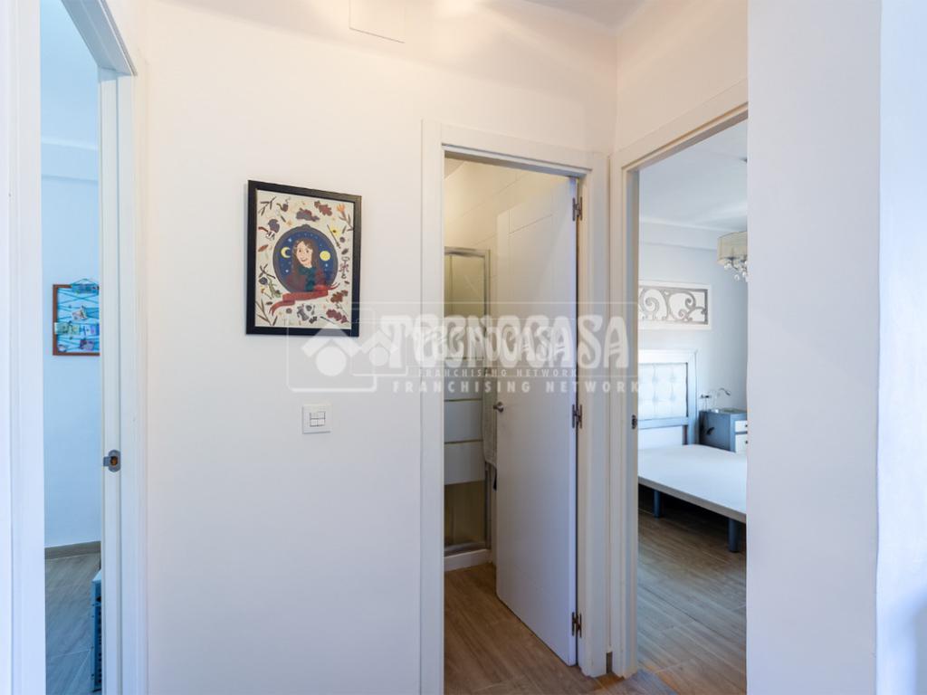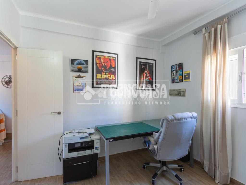 El piso se divide en recibidor, salón, cocina, tres dormitorios (uno de ellos ahora como vestidor) y un baño (con plato de ducha). También tiene terraza con bonitas vistas.